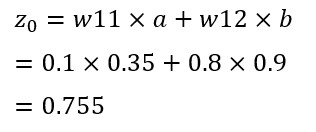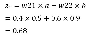 这个过程看起来十分简单,就是将所有进入 c 点的输入乘以对应的权重返回的和。同理继续计算d点的$z_1$的值