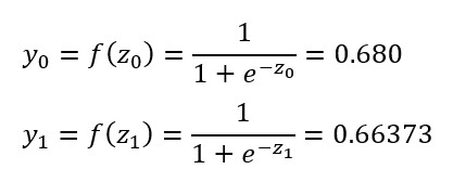 分别让 $z_0$ 和 $z_1$ 经过 $f(x)$ 激活函数,可分别得到 $y_0$ 和 $y_1$ 的值