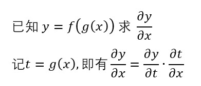开始求偏导准备来修改权重参数。开始之前先简单介绍链式法则的计算方式。在本文用到的偏导知识部分非常少,本文也只介绍本文需要用到的部分知识。假定有一个参数 x 计算出了 y 的过程中,经过了两个步骤,先经过了 g 函数,求出了 t 结果。再将 t 结果传入 f 函数,从而计算出 y 结果。此时求x的偏导则可用以下的公式