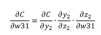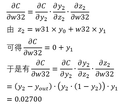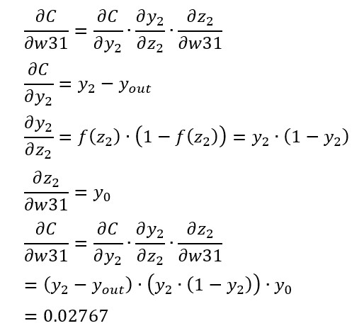 var dc_dw31 = (y2 - y_out) * (y2 * (1 - y2)) * y0;
