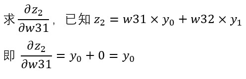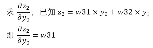 如求w31的偏导,就可以从y2到z2再到w31这样一步步求偏导做乘法,如以下示意图所示
